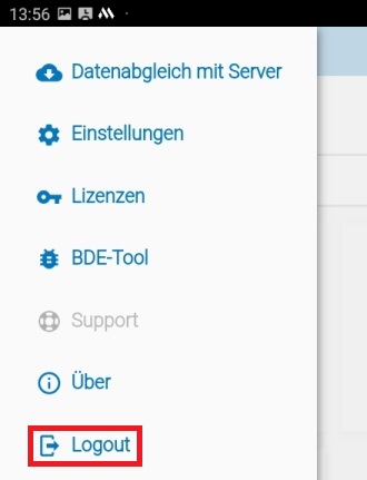 Die "Logout"-Funktion ist dazu gedacht, entweder den Benutzer auf dem mobilen Gerät zu wechseln oder die App für nicht befugte Personen zu sperren.