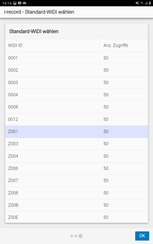 Der Benutzer erhält für jeden WiDI des Lizenzpools eine gültige Lizenz mit 50 Türzugriffe. Aus dieser Liste muss nun der eigene WiDI als Standard WiDI ausgewählt werden.