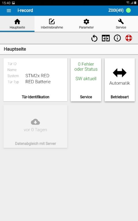 - Datenabgleich mit record Server: Download und Aktualisierung der Daten (nur aktiv, wenn nicht mit Türe verbunden)