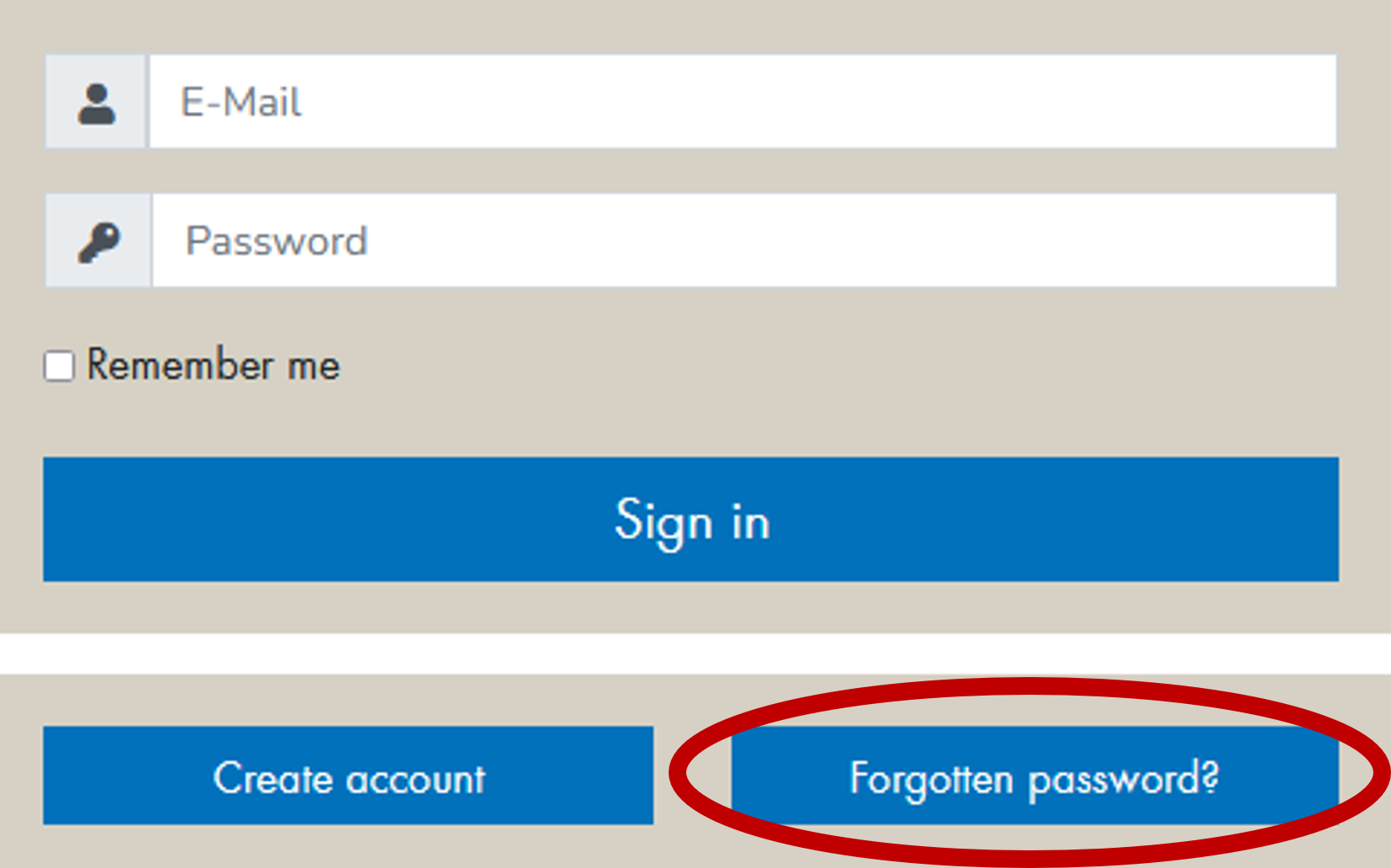 If the login on the website is not successful, either the e-mail address or the password is incorrect. To change the password, there is an option on the login screen to change the password by pressing the "Forgotten password?" button. An e-mail with a link will be sent to the user.