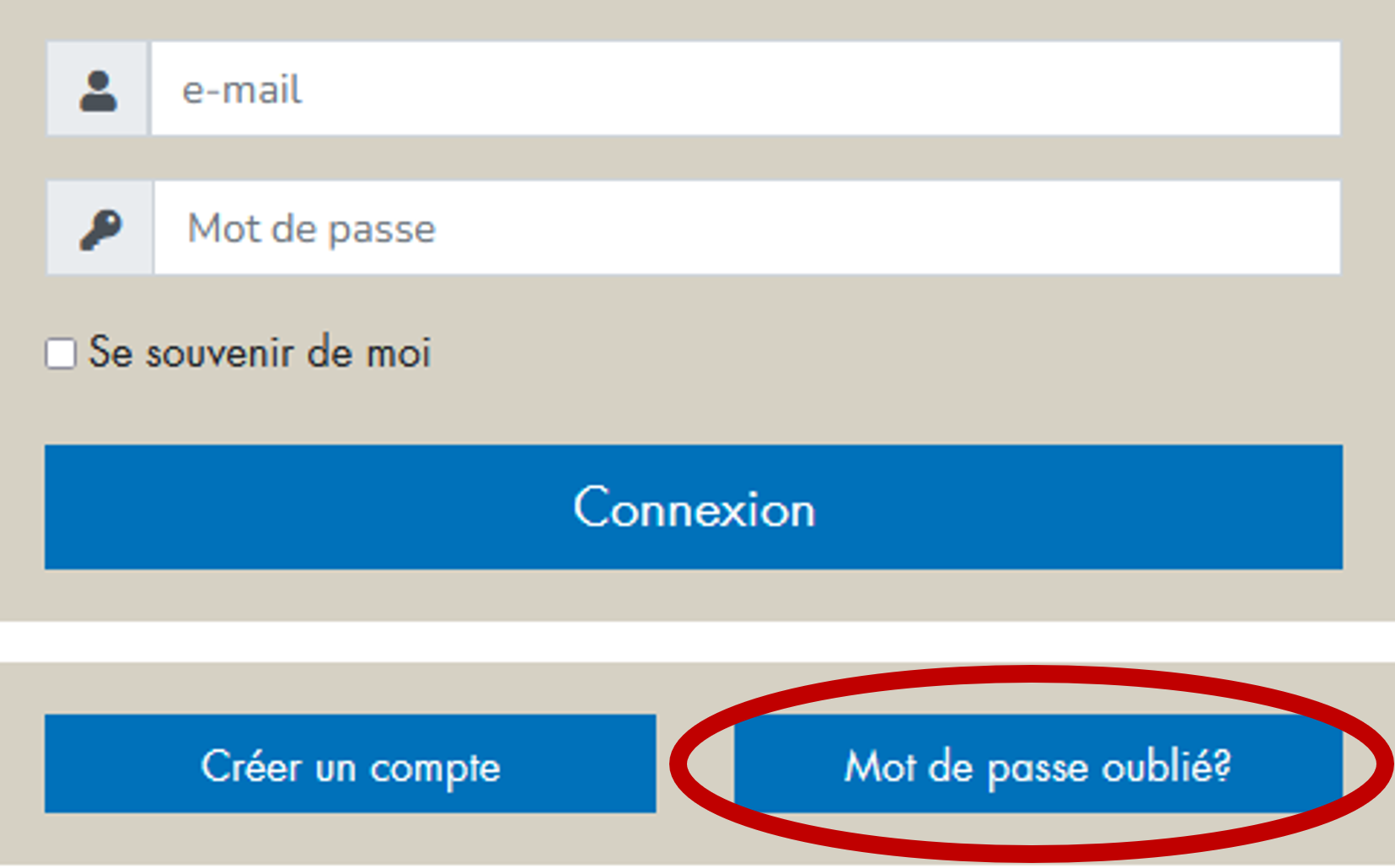 Si le login sur le site web n'est pas réussi, cela signifie que l'adresse e-mail ou le mot de passe n'est pas correct. Pour modifier le mot de passe, l'écran de connexion offre la possibilité d'effectuer la modification en cliquant sur le bouton "Mot de passe oublié ? Un e-mail contenant un lien est ainsi envoyé à l'utilisateur.